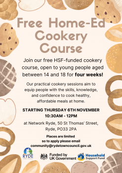 We’re excited to offer a FREE four-week cookery course for Home-Ed young people aged 14–18, funded through the Household Support Fund (HSF).